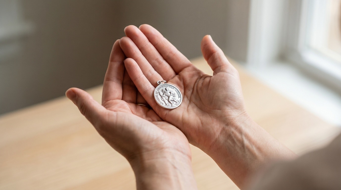 Porter une médaille de saint n’implique pas une profession de foi formelle. Cette démarche relève davantage d’un geste de protection symbolique et de la transmission d’une intention sincère : « je pense à toi quand tu prends la route ».