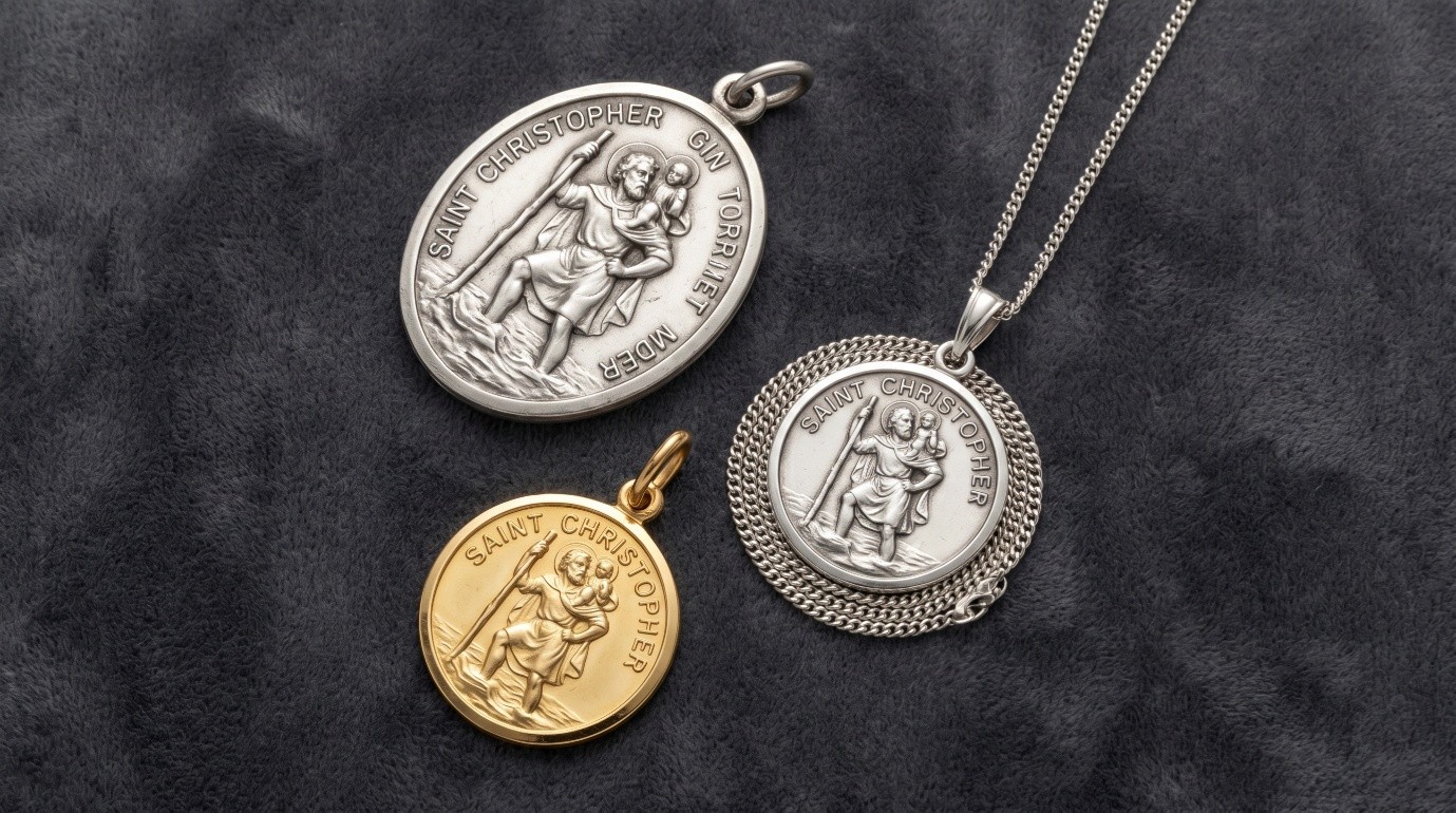 La tradition de porter des médailles de saints remonte au Moyen-Âge, quand les pèlerins portaient sur eux l’effigie de leur saint protecteur avant de se mettre en chemin. Saint Christophe, dont le nom signifie littéralement « porteur du Christ », était invoqué pour traverser rivières et forêts en toute sécurité.